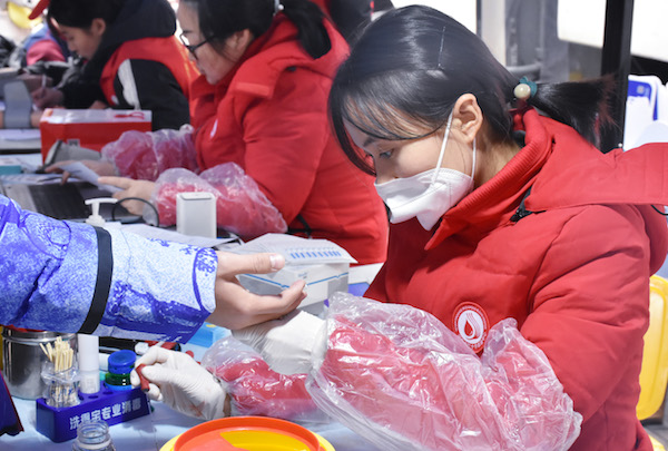本次献血活动中,我校青年志愿者协会的志愿者们早早来到现场,不畏严寒把活动场地搭建好,为献血活动的开展做了充分准备。师生们献血热情很高,依次排队填写个人信息单及报名表,进行了测量血压、化验血型等基本检测。献血过程中,青年志愿者们积极配合医护人员工作,耐心解答同学们的疑问,现场分发糖水,帮助献血者缓解紧张情绪。志愿者们在引导献血的同时,呼吁献血者在便利贴上写下献血后的感想,发动更多师生参与到献血活动中来。