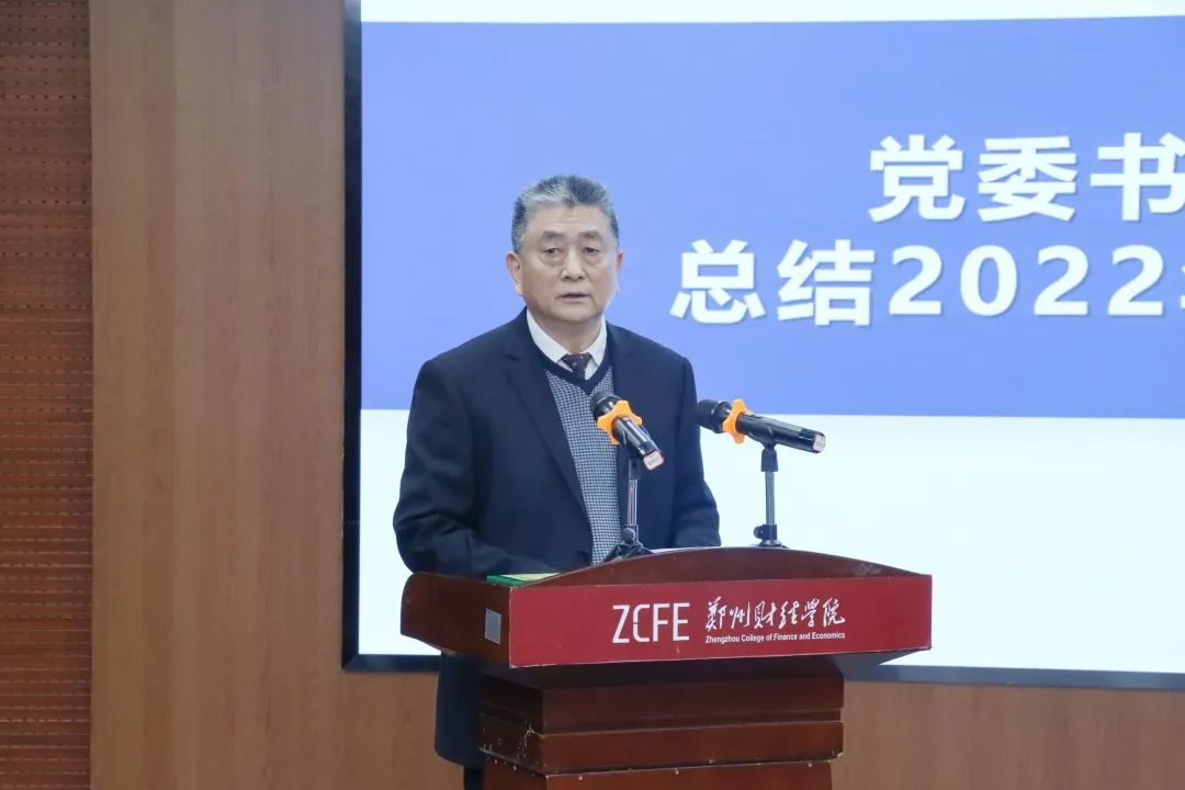 李国强对学校2022年度党建工作作了总结,并部署2023年度党建工作要点。他指出,在过去的一年里,学校党委以习近平新时代中国特色社会主义思想为指导,认真学习贯彻党的二十大精神,以“能力作风建设年”活动为抓手,统筹推进疫情防控和教育教学工作,在队伍建设、阵地建设、学生服务管理、校园安全稳定等方面精准施力、持续发力、凝心聚力,为学校建设发展提供了坚强引领和保障。他强调,2023年党委工作要点为聚焦政治引领,着力加强党的思想建设。聚焦强基固本,着力夯实基层党组织根基。聚焦阵地管控,着力筑牢意识形态安全防线。聚焦正风肃纪,着力深化全面从严治党。聚焦立德树人,着力构建思政育人新格局。聚焦思想引领,着力培育优良校风学风。聚焦服务大局,着力开创统战群团工作新局面。聚焦安全屏障,着力维护校园和谐稳定。